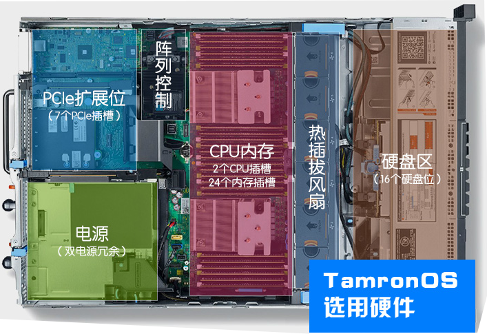 Dell PowerEdge系列机架式服务器,选用Intel双志强处理器,8核16线程,16GB_ECC校验内存最大可扩展至512GB,双电源热备系统,断电延时切换功能。独立5风扇设计,LSI 6I磁盘阵列卡SAS/SATA3最大支持16TB硬盘阵列。四条PCI-e X8扩展槽,内置四口BCM全千兆网卡,独立服务器远程管理CON卡。完善的散热、防尘、防报错伺服体系。这才是构建稳定机房的坚实硬件平台。也是软件名称智慧机房系统的首选硬件产品。